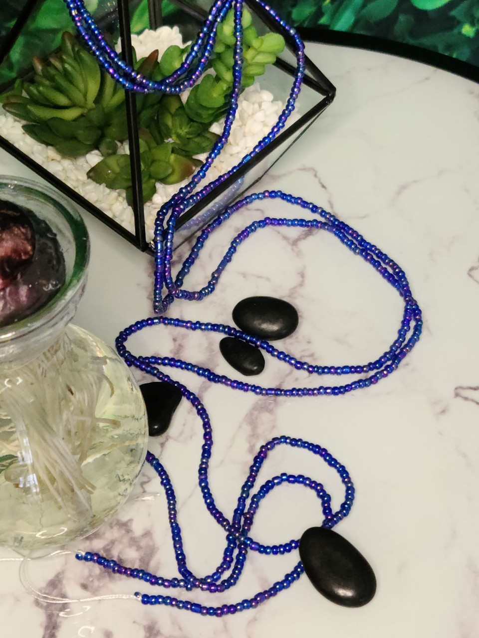 Loading... Please wait...Our Limited-Edition “Iridescent Blue” Waist Beads is a traditional African accessory that consist of small glass beads on a string or wire worn around the waist or hips.